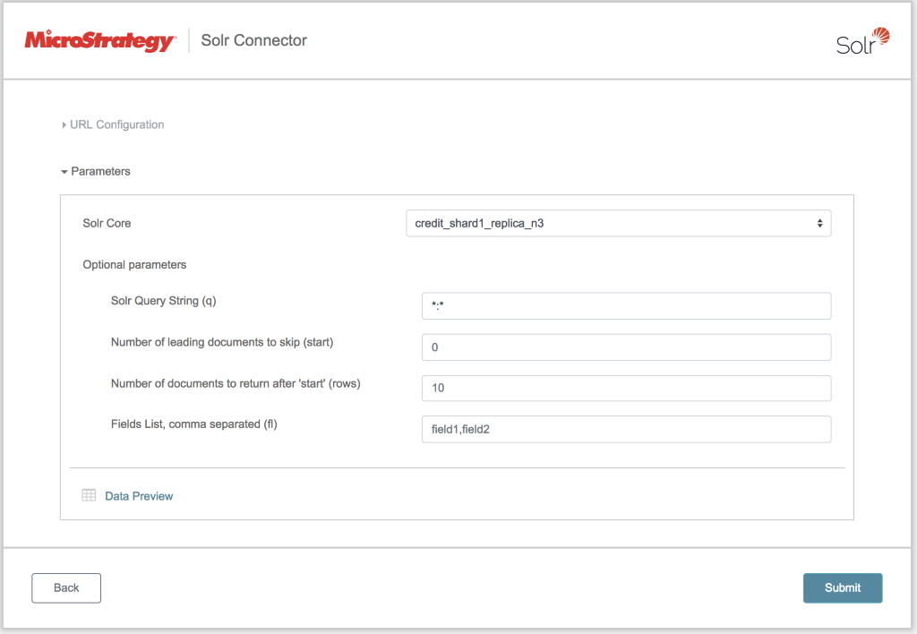 - 从数据源列表单击 Solr 连接器图标。