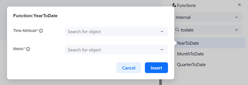 Starting in Strategy One (March 2026), you can also use QuarterToDate, YearToDate, or MonthToDate and click Add...
