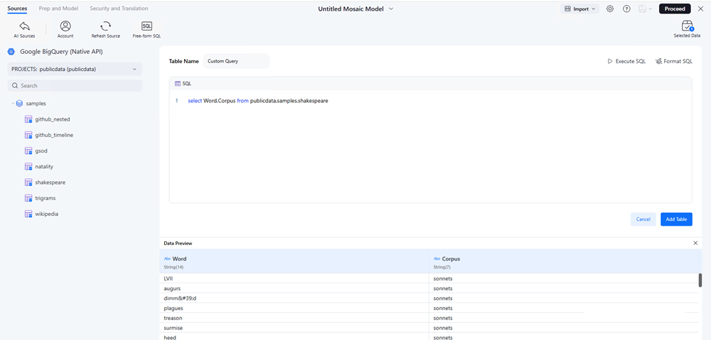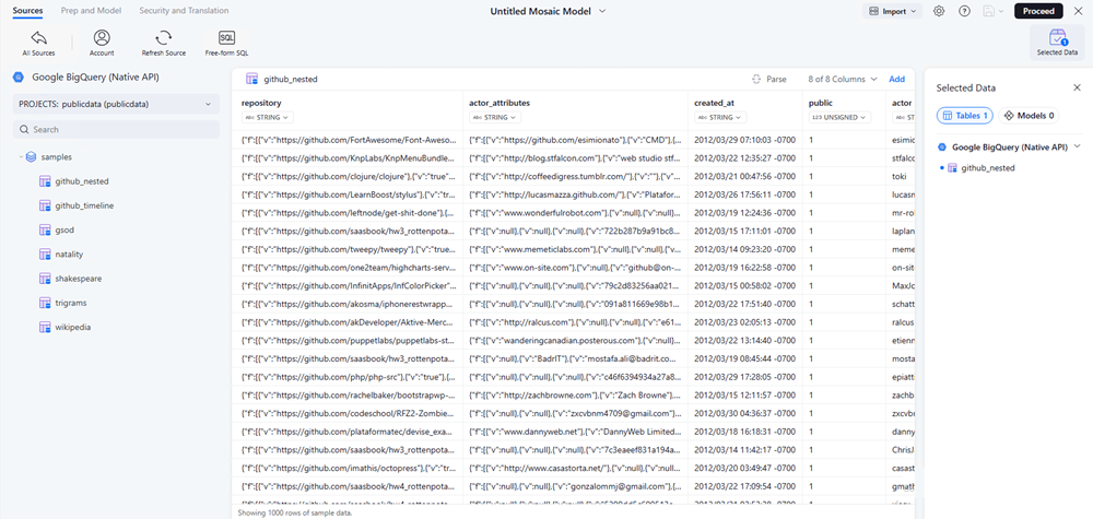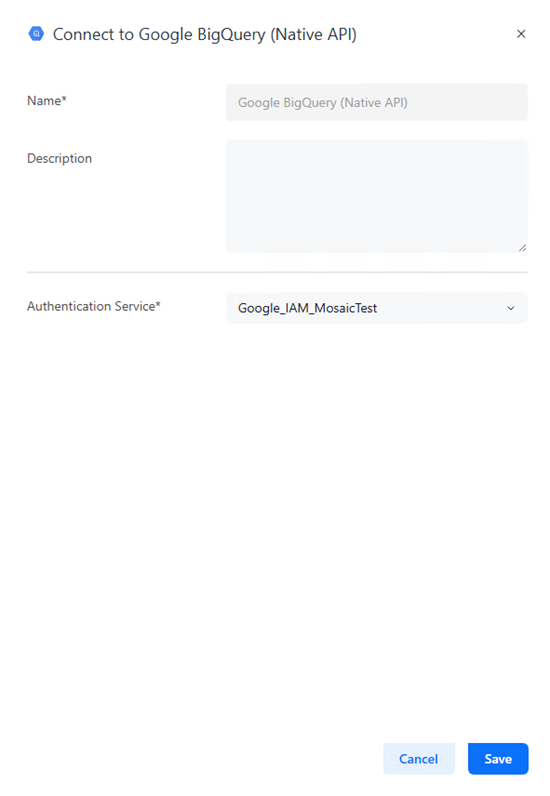 Connect to Google Google BigQuery (Native API) in Mosaic Studio
