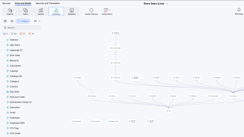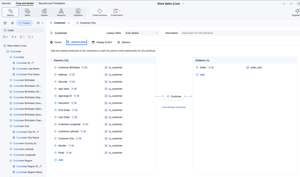 Data Validation and Quality: Relations act as a guardrail. If you define a relationship as 1:N (one-to-many), but the underlying data is actually N:M (many-to-many), the system will validate and highlight these discrepancies when in import mode after publication. Relations are a vital tool to catch data integrity issues before they reach the end-user.