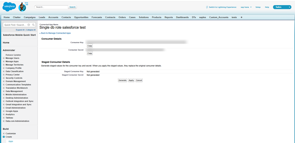 Under Consumer Key, copy the Consumer Key and Consumer Secret values. You will need these values for future steps.