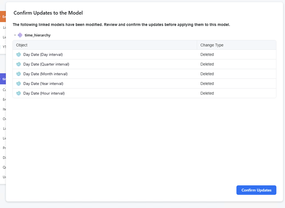 After editing attributes to remove or add an external model, when you open the linked model an update confirmation displays.