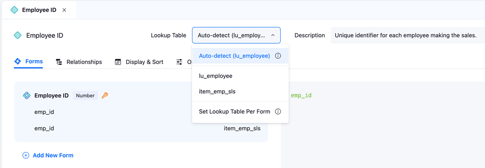 アトリビュートの自動検出プロパティが、デフォルトで有効になる自動検出プロパティを持ちます。ルックアップ テーブルは、アトリビュート フォームごとに自動的に検出されます。