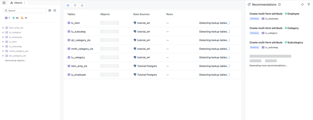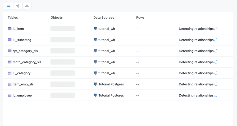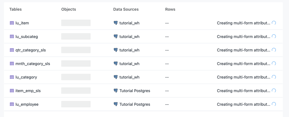 自動モデルにテーブルを追加すると、名前のクレンジング プロセスが自動的に開始されます。