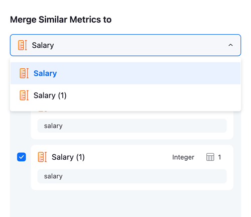 ダイアログ上部のドロップダウンリストを展開し、マージ先のターゲットメトリックを選択します。