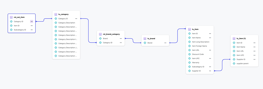各関係テーブルについて、関係テーブル上の親属性を独自のルックアップ テーブルに接続します。