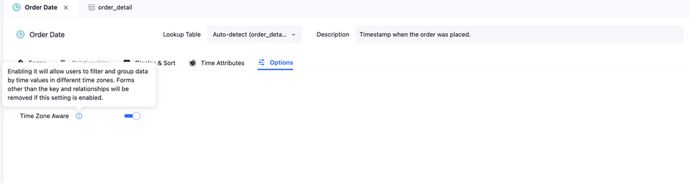 スマート アトリビュートの TimeStamp データ型をタイムゾーン対応にすることで、異なるタイムゾーンでのデータを表示できます。