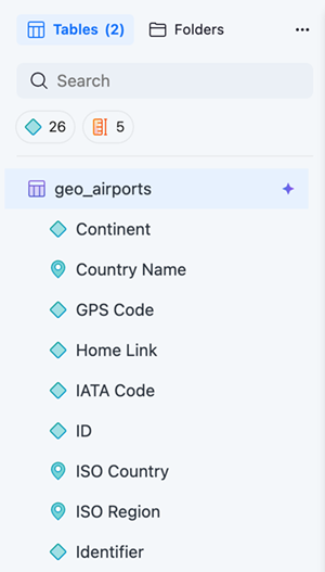 Mosaic modelは、地理データを自動的に検出し、Geographical roleを割り当てます。Geographical Roleが割り当てられたデータには、GEOアイコンが表示されます。