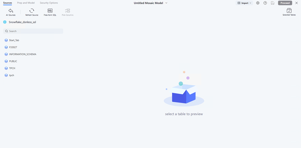 7. 以下のいずれかの方法を使用して、 Mosaicモデルにテーブルを追加します: