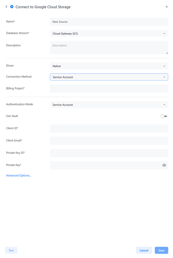 Private Key: 管理者から取得したサービス アカウント キー JSON ファイルのプライベート キーを入力します。