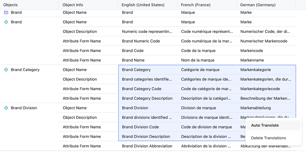 モデル内のすべてのオブジェクトが、プロジェクト内に読み込まれた言語に自動的に翻訳されます。