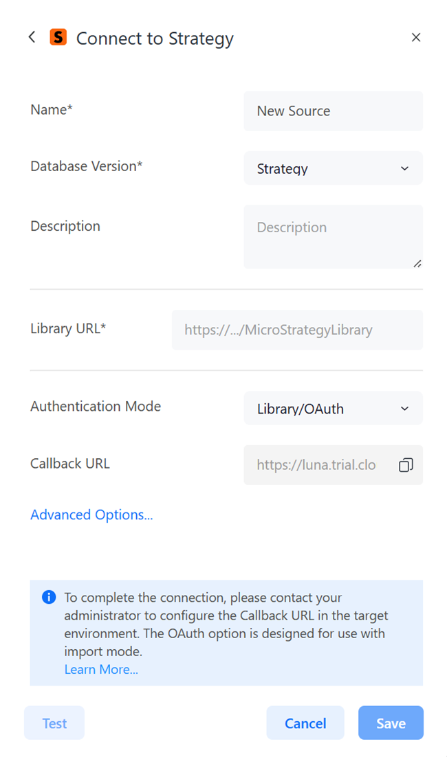 Strategy One (October 2025)では、Strategy connectorでOAuthのサポートが追加されました。このサポートの追加により、ユーザーはSAMLを含む、ターゲット環境で構成されている任意の認証を使用できるようになります。