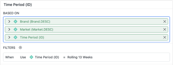 In the example below, the default filter is Rolling 13 weeks, changed only if the query includes a different time period.