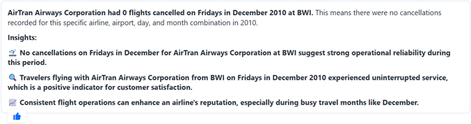 例えば、「2024年の収益は何ですか?」と質問します。 エージェントがすべての地域の収益で回答した場合、Thumbs Downアイコン