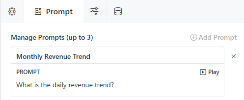 - Promptボックスに、プロンプトの説明を入力します。説明は、「What is the daily revenue trend?」のように簡単なものでも、「Give me a line chart of