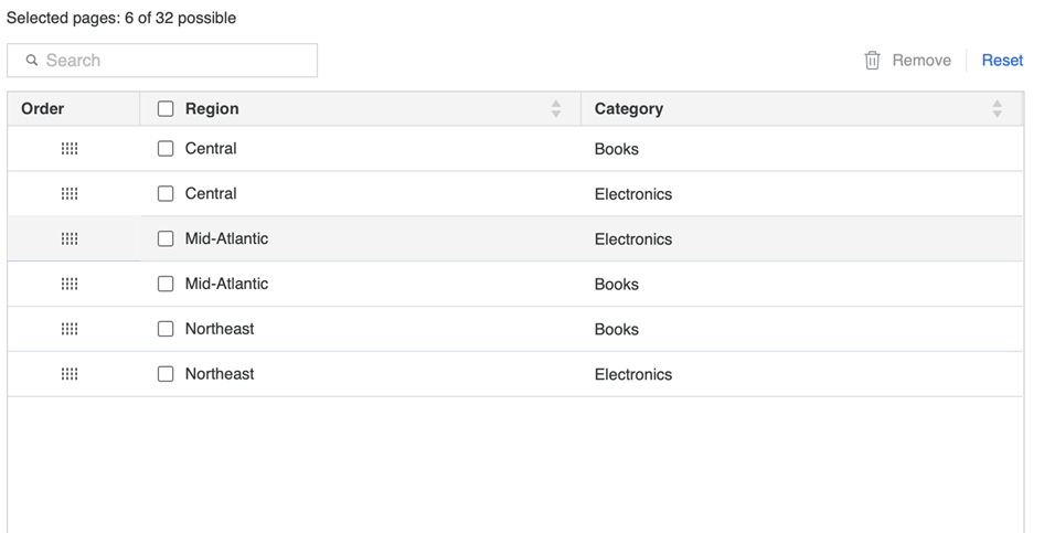- Cliquez sur Ajouter pour ajouter l'objet sélectionné ou Ajouter tout pour ajouter toutes les variantes disponibles pour les objets de saut de page de votre rapport.