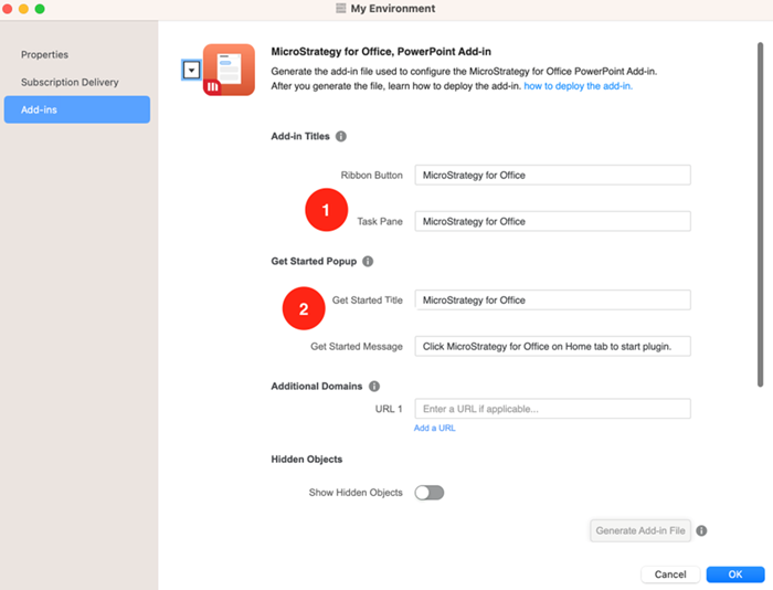 Pour installer Strategy for Office Complément PowerPoint dans Office 365 ou Office pour Windows, vous devez d'abord générer un fichier manifeste à l'aide de Strategy Workstation.