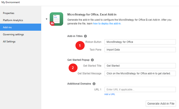 Per installare MicroStrategy for Office in Office 365 o Office per Windows è necessario generare un file manifesto utilizzando MicroStrategy Workstation. È possibile anche generare il file manifesto in Strategy Web.