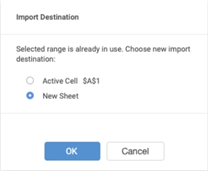 Se l'intervallo di celle selezionato non è disponibile, viene visualizzata la finestra di dialogo Destinazione importazione in cui si chiede di selezionare una nuova destinazione per i dati. Selezionare una delle due opzioni seguenti: