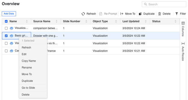 A partire da MicroStrategy ONE (marzo 2024) sarà possibile accedere comodamente alle informazioni su tutti gli oggetti importati.
