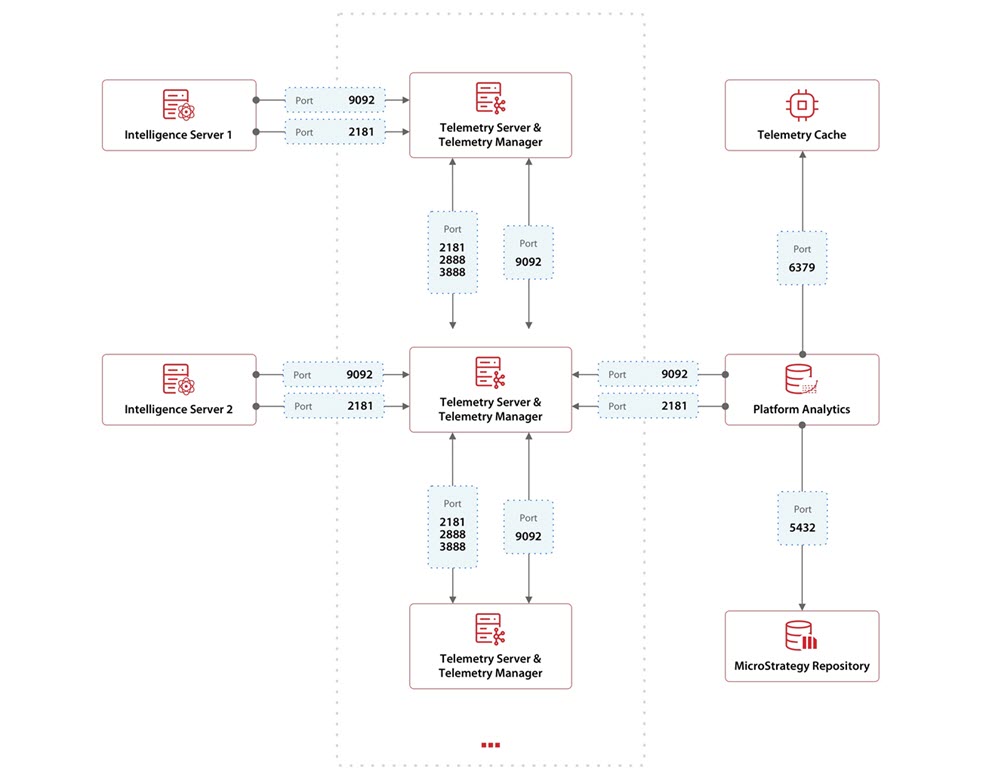 - Intelligence Telemetry: 이 구성 요소는 원격 측정 생산자 역할을 하며 Intelligence Server에서 생성된 모든 데이터를 Telemetry Server로 보냅니다.