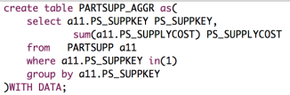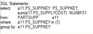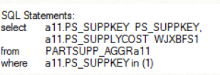 After adding the aggregated table into the architecture and creating the consistent attribute and metric on the aggregation table PARTSUPP_AGGR, the report SQL is: