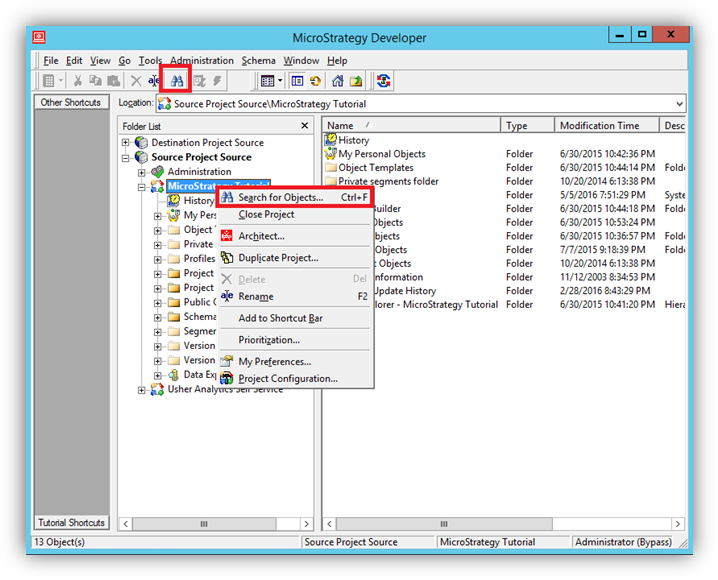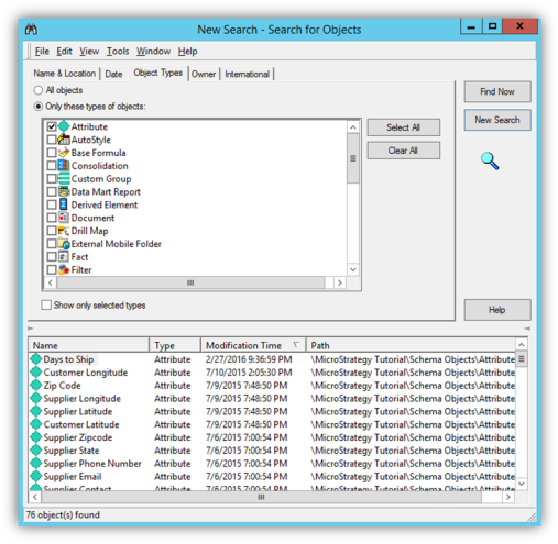 The MicroStrategy metadata is a collection of all objects in a relational format and can grow extremely large over time. Search is an important feature for easy management of objects.