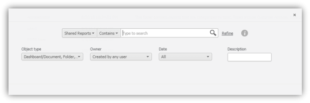 Click Refine. This allows you to search based on object type, owner, date, and description.
