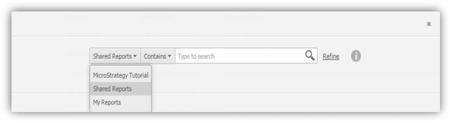 From the drop-down, select Shared Reports to choose a different location to search through.