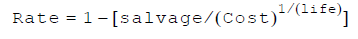 Returns the depreciation of an asset for a specified period, using the fixed-declining-balance method. This is a method of accelerated depreciation which is faster than straight line depreciation early in the life of the asset.
