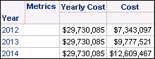 Help ). This means that this derived metric displays the total cost for all years, as shown in the report below: