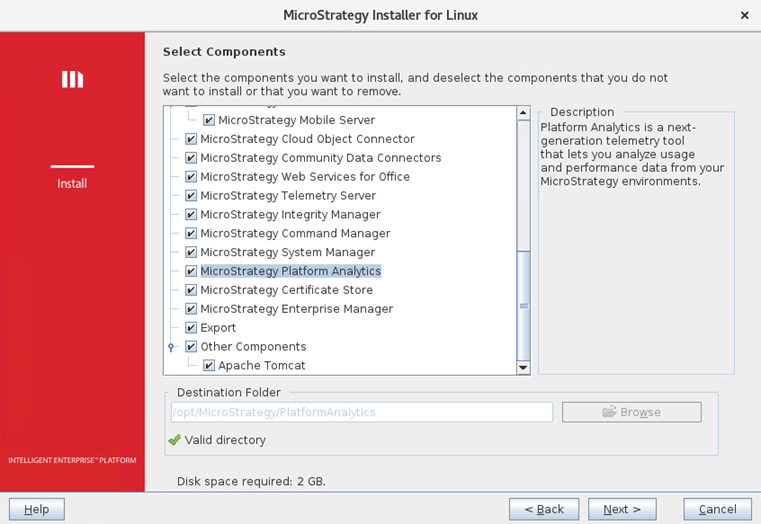 以前のインストールで MicroStrategy Platform Analytics を選択していた場合、[コンポーネントを選択] で自動的に選択されます。アップグレードするコンポーネントを確認し、[次へ] をクリックします。