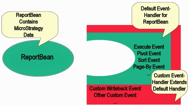 The diagram below shows a newly defined event handler (labeled Custom Event Handler) that performs custom actions, which extend the abilities of the default event handler: