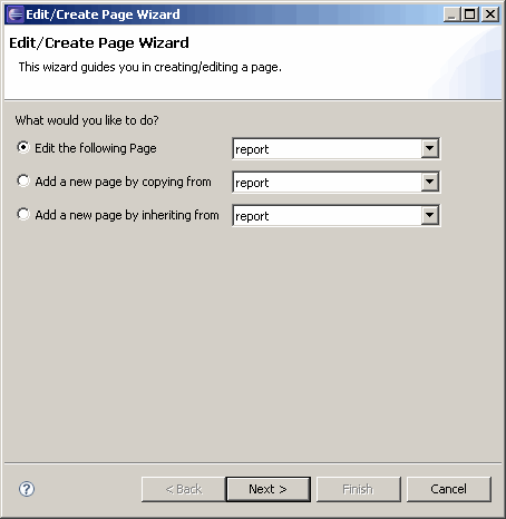 Right-click Pages and select New Page to launch the Edit/Create Page Wizard.