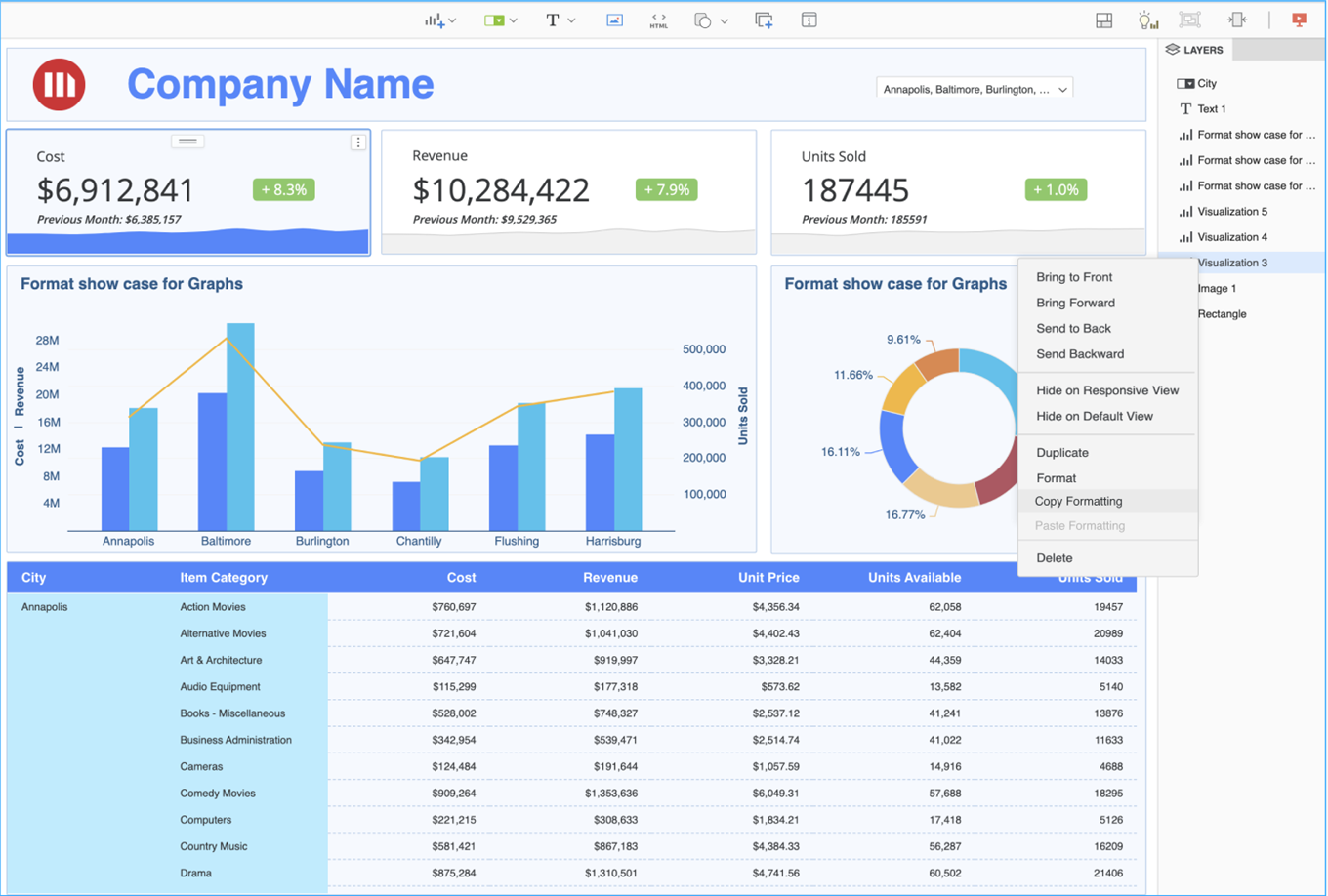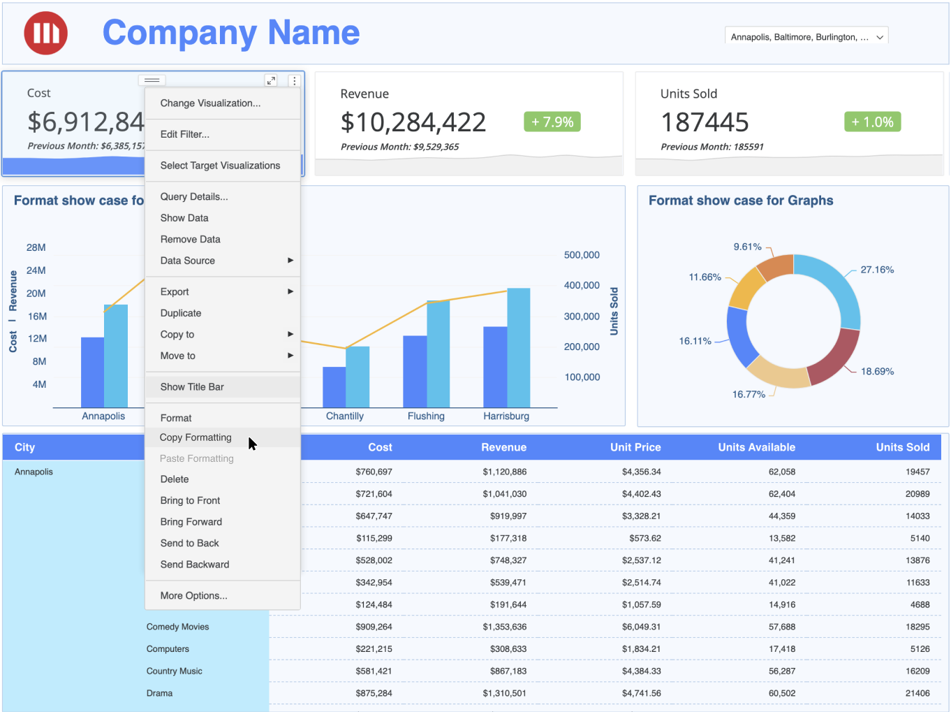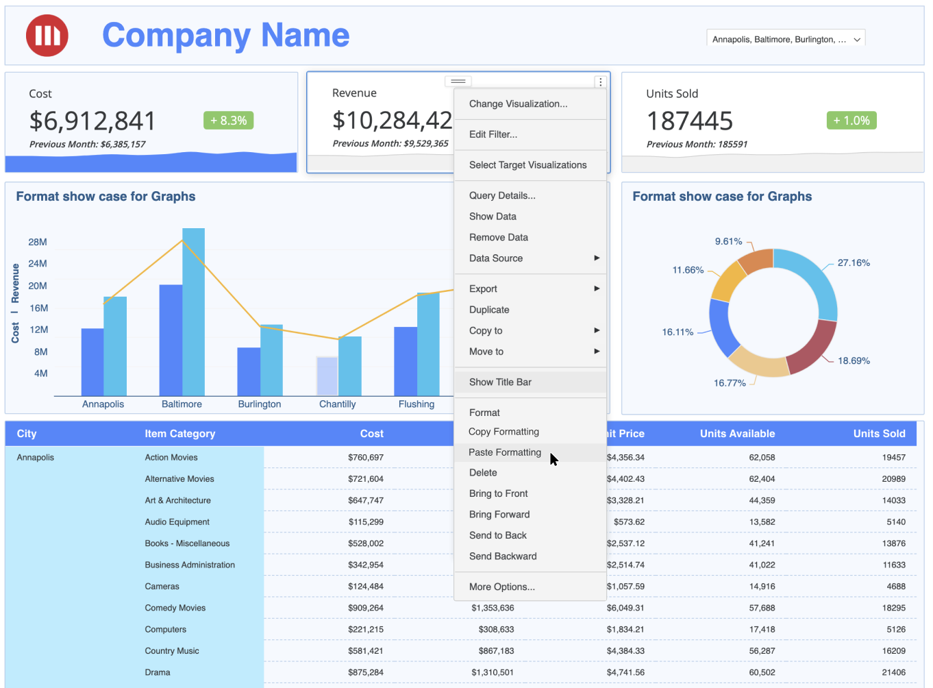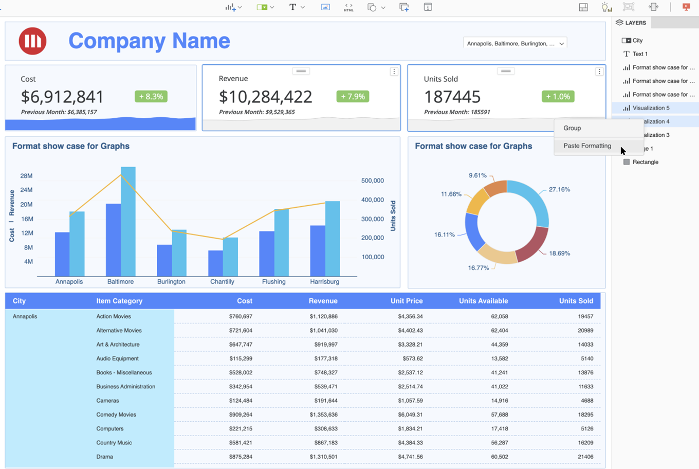 2. Right-click on one of the selected visualizations and choose Paste Formatting.