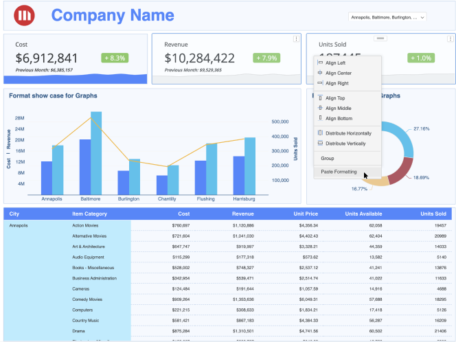 Starting in MicroStrategy ONE Update 11, Application Architects can copy visualization formatting and paste it on other visualizations. The available formatting includes default font type and size, fill color, and other formatting properties in different visualizations or component types.
