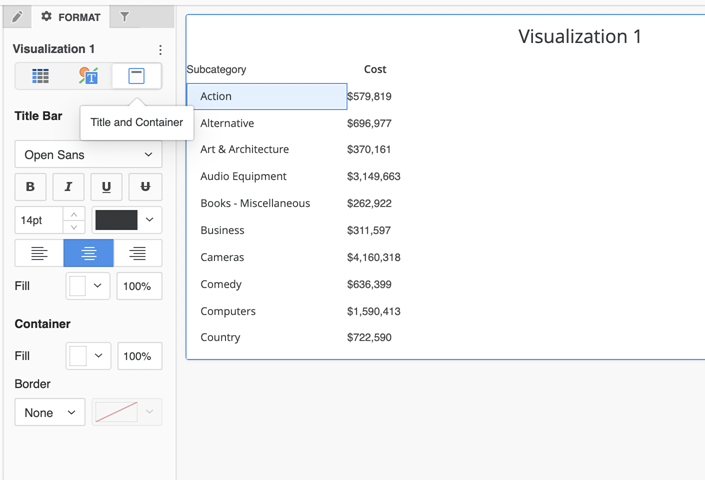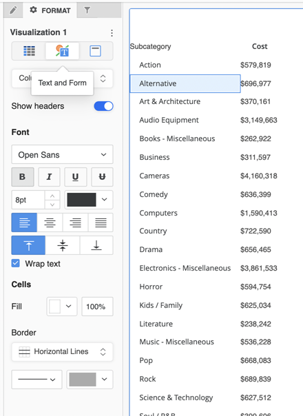 Supported Visualizations and Formatting