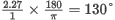 Degrees(2.27) = 130