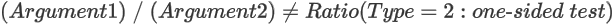 FTest <Hypothesis type, Ratio> (Argument1, Argument2)