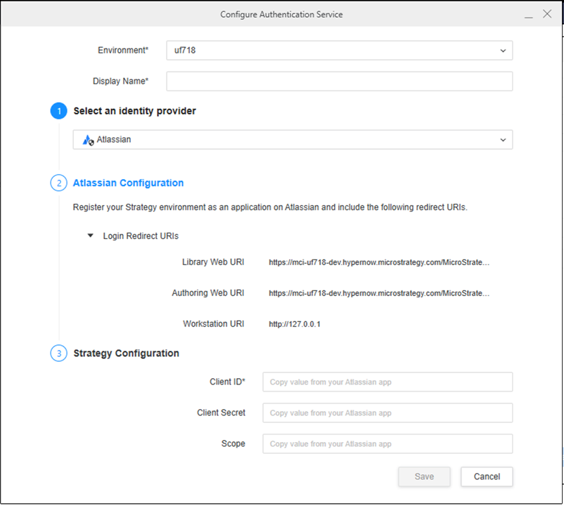Type the Client ID and Client Secret. The Library Web, Authoring Web, and Workstation URIs are automatically populated.