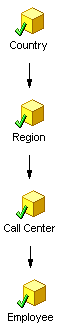In another example, imagine that your company is an Internet-based retailer and has its call centers all over the U.S., and therefore stores its employee data in your data source within the concept of geographical locations within the U.S. The related business attributes within this idea of geographical location become part of the Geography hierarchy. An example using sample data from the Tutorial project is shown below: