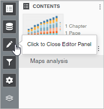 Vous pouvez afficher et masquer les panneaux utilisés pour modifier, filtrer et mettre en forme les visualisations dans un tableau de bord.