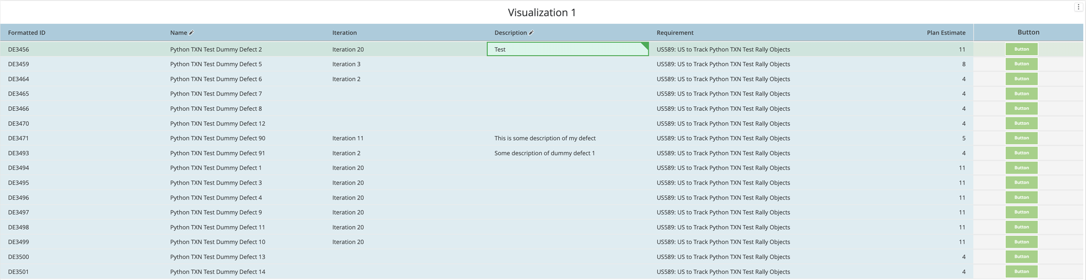 Configurez les boutons d'action avec un script Python standard pour les situations où l'action n'attend pas de modifications de l'utilisateur. Si les boutons sont configurés avec un script de transaction Python, les cellules restent modifiables.