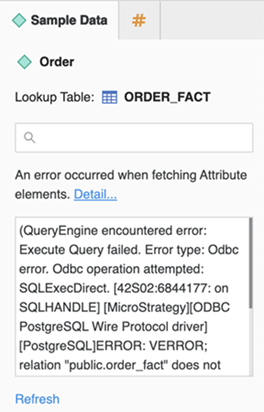 En cas de problème, cliquez sur Détail pour afficher le message d'erreur. Si nécessaire, cliquez sur Actualiser pour recharger les données.