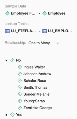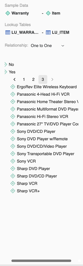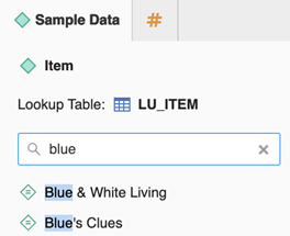 Dans le volet droit, le Échantillion de données L'onglet affiche la table de référence et les éléments d'attribut de l'attribut sélectionné.