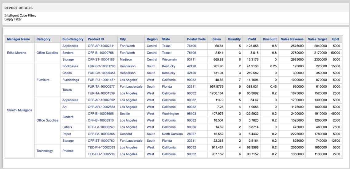 Le rapport offre une vue unifiée de toutes les données utilisateurs lorsqu'aucun attribut de saut de page n'est sélectionné.