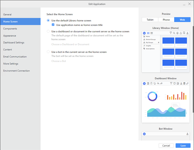 Démarrage dans MicroStrategy ONE (Septembre 2024), vous pouvez configurer votre environnement pour afficher le nom de l'application dans la barre de navigation supérieure de Library. Vous pouvez utiliser cette personnalisation pour personnaliser votre Strategy déploiement lorsque vous utilisez la page d'accueil Library par défaut.
