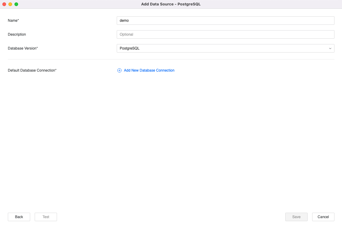 Si vous devez ajouter une nouvelle connexion de base de données, fournissez tous les détails nécessaires pour établir la connectivité avec la base de données.
