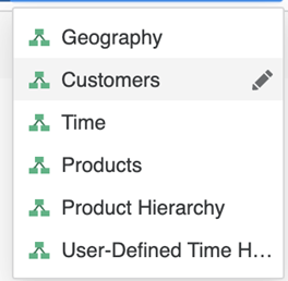 Cliquez sur Hiérarchie définie par l'utilisateur en haut de l'éditeur de hiérarchies et choisissez la hiérarchie cible.