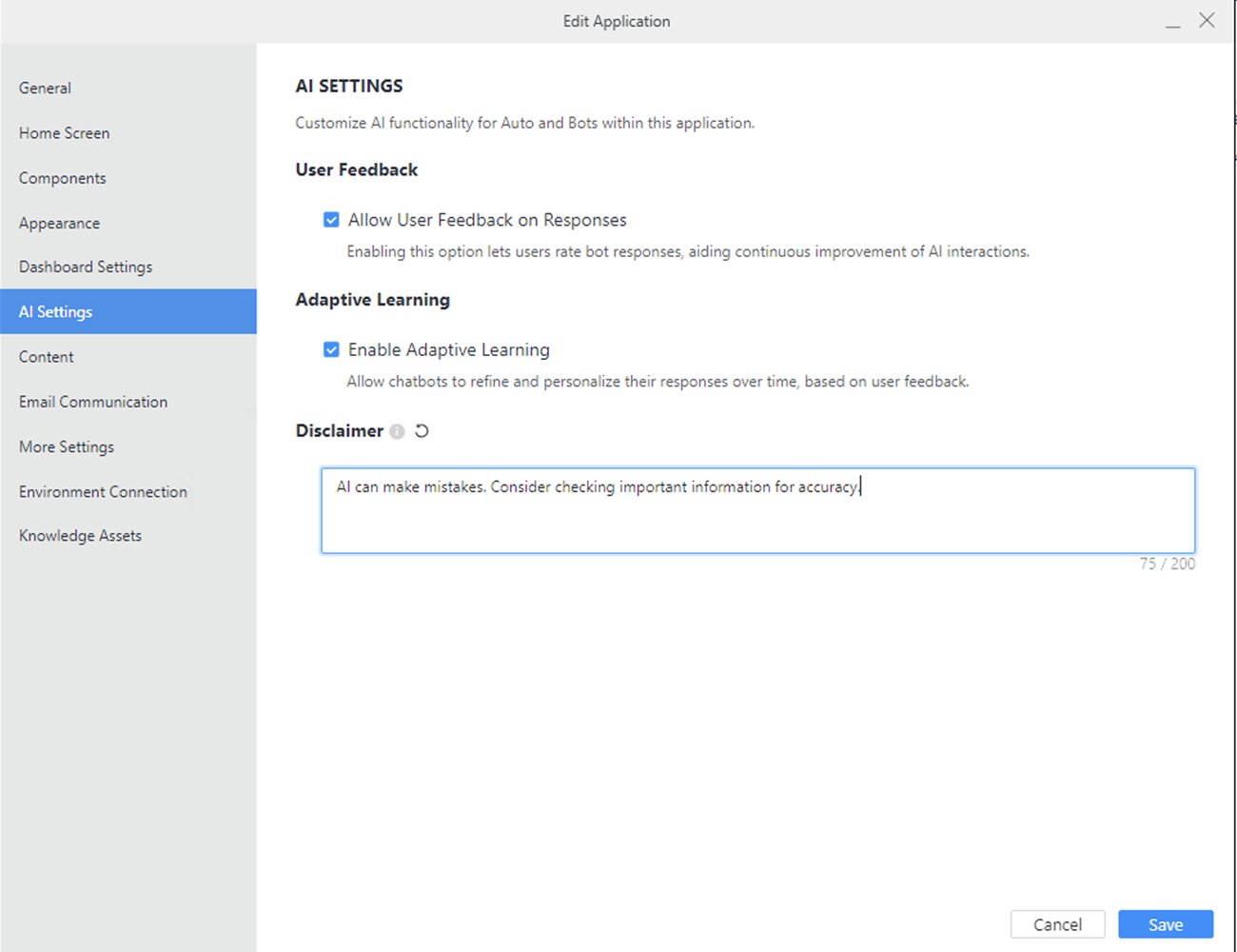 Dans le volet gauche, cliquez sur IA Paramètres.